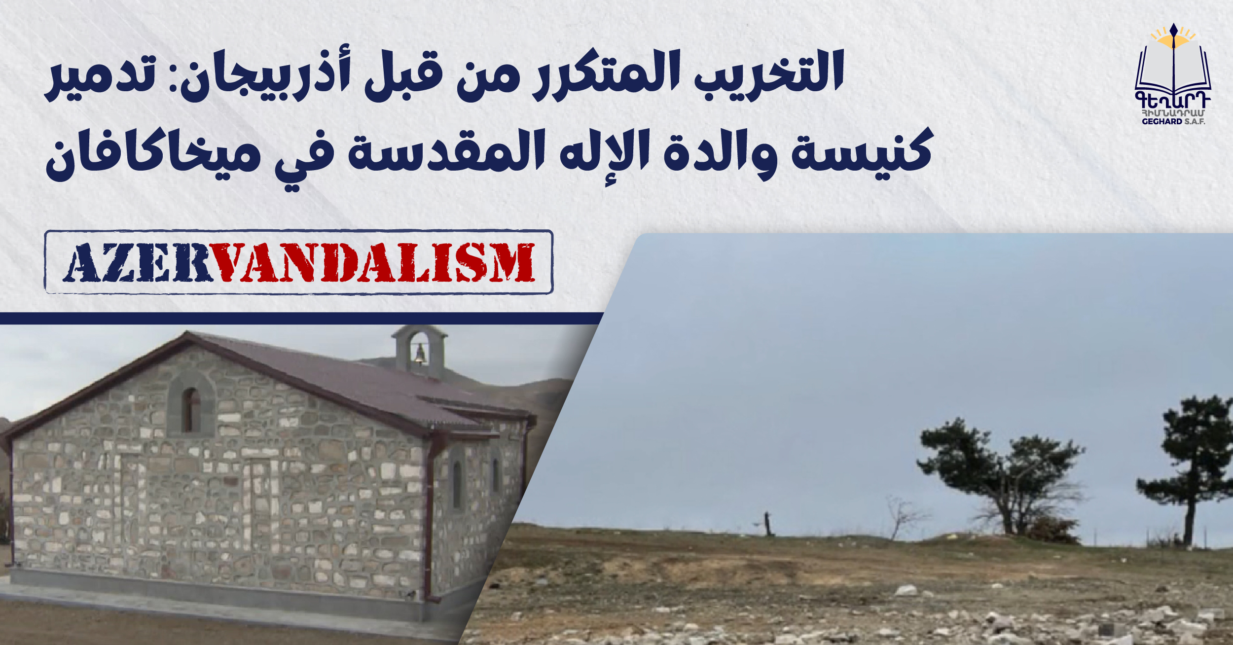 تثبت مقالة نشرتها "بي بي سي وورلد نيوز" في ۲٥ مارس ۲۰۲۱ أن أذربيجان دمرت بالكامل كنيسة والدة الإله المقدسة في ميخاكافان، والتي كانت تُستخدم كمعبد ديني لوحدة عسكرية منذ عام ۲۰۱۷.