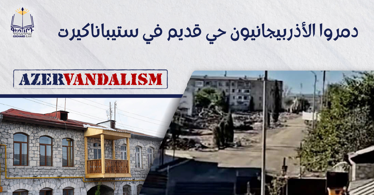 يستمر الأذربيجانيون بتدمير الشخصية التاريخية والتراث الثقافية للمستوطنات في آرتساخ. تجلى التخريب الاستمراري الأذربيجاني هذه المرة بتدمير المباني في الجزء القديم لشارع تومانيان في ستيباناكيرت. تم تدمير المباني الأرمنية بالكامل التي شيدت في أواخر القرن التاسع عشر وأوائل القرن العشرين.