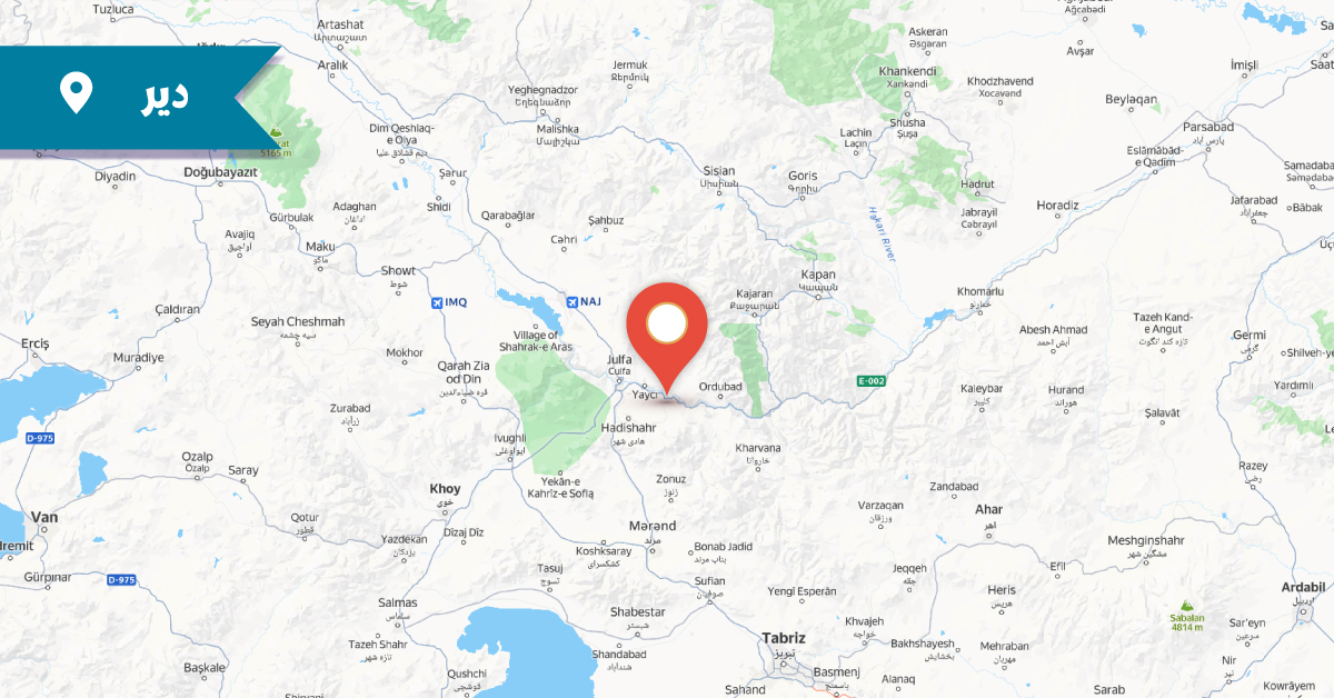 كانت دير أحد القرى الأرمنية في مقاطعة غوغتن الفاسبوراكاني التاريخية. وقعة على الساحل الأيمن من نهر غيلان، حوالي ١كم من أراكس، بين القرى آزا العليا و السفلى.<1> و ١٩كم شمال-غرب من مدينة أوردوباد. كانت القرية تسمى أيضًا تيرن و كانت تابعة لأبرشية غوغتن الكنسية.<2> كانت القرية مستوطنة من قبل الأرمن بالكامل. خلال الغزوات العربية و الهيمنة، استوطنوا العرب هناك. تم الحفاظ على آثار مسجد ومنارة عربية من القرون الثالث عشر والرابع عشر. ولكن ابتداءً من القرن الرابع عشر، أصبحت القرية مأهولة بالأرمن مرة أخرى بالكامل.<3>