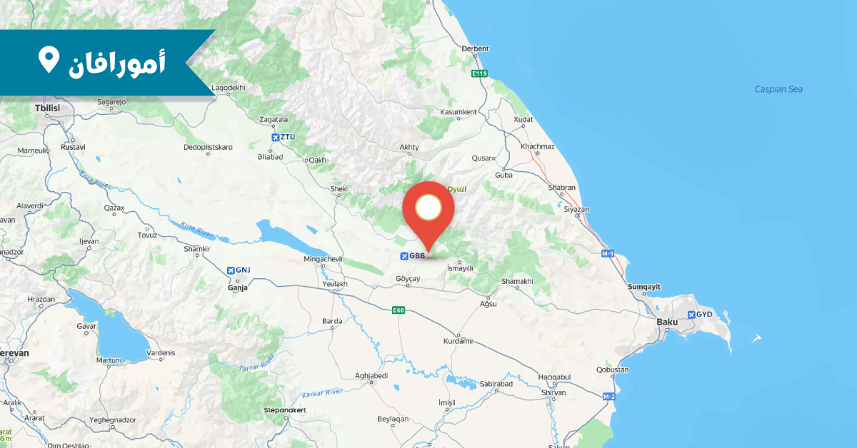 تقع قرية أمورافان في مقاطعة كاباجاك، ضمن مدينة أغفانك التاريخية، على بعد ١٧.٣ كم جنوب شرق مركز غابالا (كوتكاشن) الإداري الحالي. وقد ذُكرت القرية أيضًا بأسماء أخرى مثل أميرفان، وأميرفان، وأمرفان.
