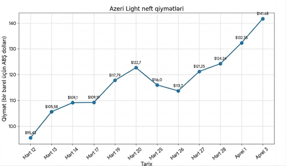 Yaxın Şərqdəki münaqişə fonunda dünya bazarında Azərbaycan nefti olan Azeri Light markasının qiyməti də artır. Aprel ayının 1-də Azərbaycan neftinin qiyməti 132.35 ABŞ dollarına çatmışdı, aprel ayının 3-də isə bu qiymət 10.89 dollar və ya 8.3% artaraq 141.68 ABŞ dollarına çatmışdır.