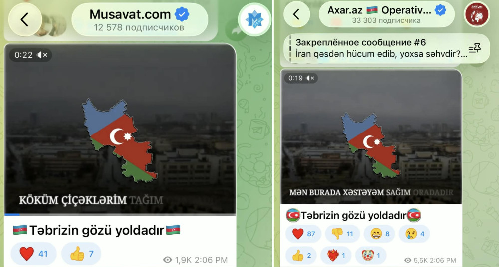 Parallelly, Azerbaijan has strengthened propaganda on Azerbaijani social media regarding territorial claims over Iran’s Azerbaijan province. In particular, Musavat.com and Axar.az. published posts on Telegram with slogan “Tabriz is waiting for its day”. In effect, these publications are Azerbaijan’s explicit territorial ambitions toward the Islamic Republic of Iran.