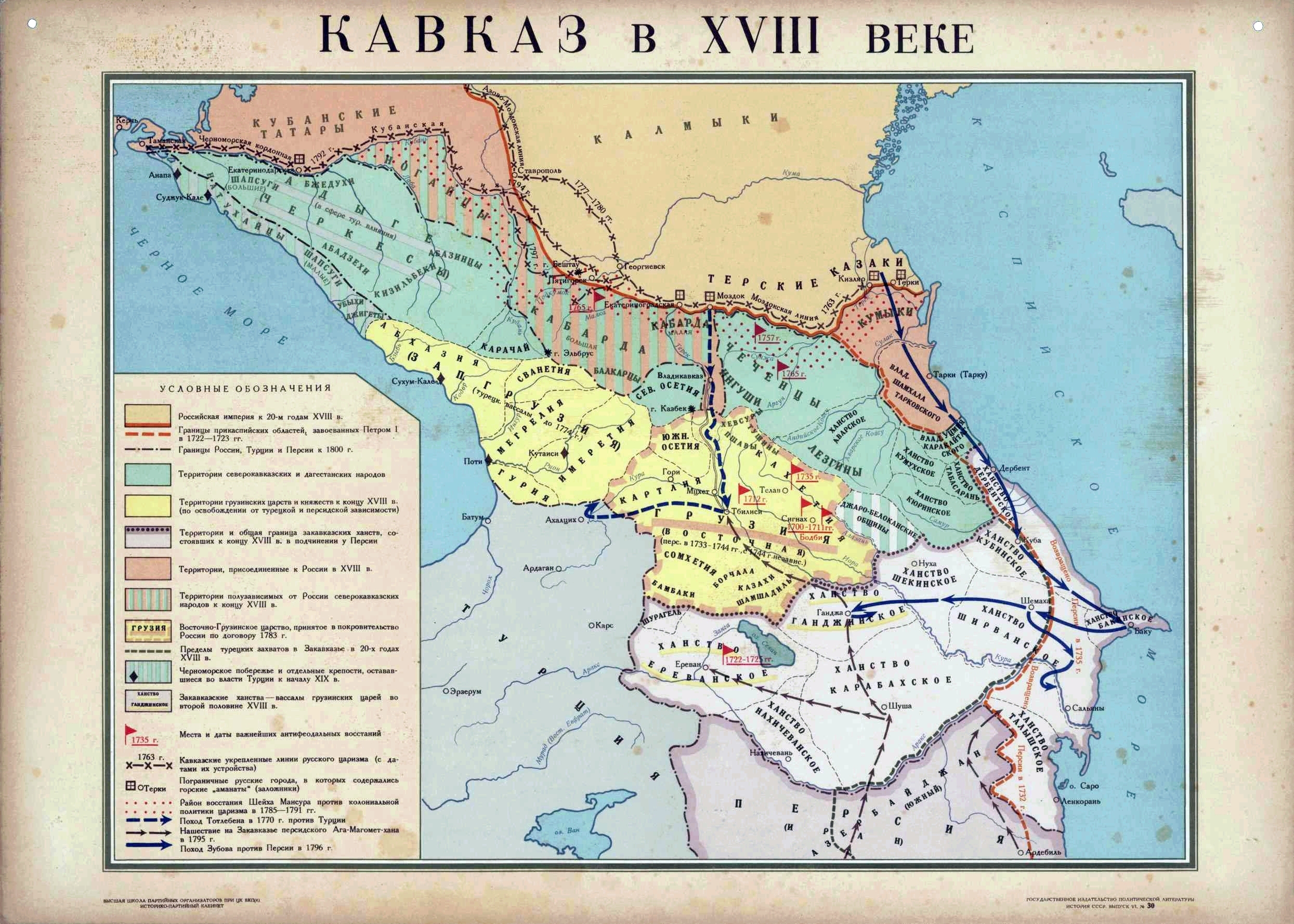 Таким образом, во второй половине XVIII в. краеугольным камнем российской кавказской политики стал возврат к восточной политике Петра I, продолжавшейся в 1750–1770-х гг., что получило новое содержание, то есть параллельно с планом утверждения в прикаспийских областях вплоть до Гиляна с помощью русского оружия, нейтрализации турецкой угрозы дипломатическими средствами и удержания Османской империи на возможном расстоянии.