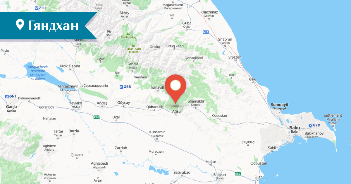 Армянское село Гяндхан[1] находилось в 10,9 км к северо-западу от районного центра Агсу, на территории современного Агсуйского района. В древности село входило в состав исторического Ширвана.