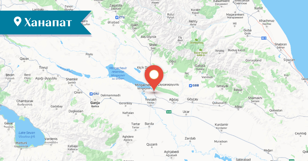 Армянское село Ханапат находилось в 29,4 км к северо-западу от поселения Агдаш Арешского уезда Елизаветпольской губернии. В древности территория уезда входила в состав Алуанка и называлась Кагадашт. Село также известно под названиями Ханабад, Ханават, Ханавад[1]. По соседству с Ханапатом находилось одноименное тюркское село, жители которого 28 ноября 1905 года во время армяно-татарских столкновений напали на армянское поселение.