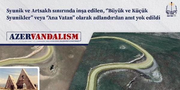 Syunik ve Artsakh sınırında inşa edilen, ‘’Büyük ve Küçük Syunikler’’ veya ‘’Ana Vatan’’ olarak adlandırılan anıt yok edildi