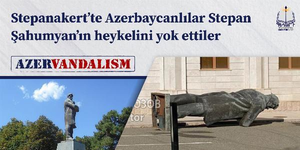Stepanakert’te Azerbaycanlılar Stepan Şahumyan’ın heykelini yok ettiler