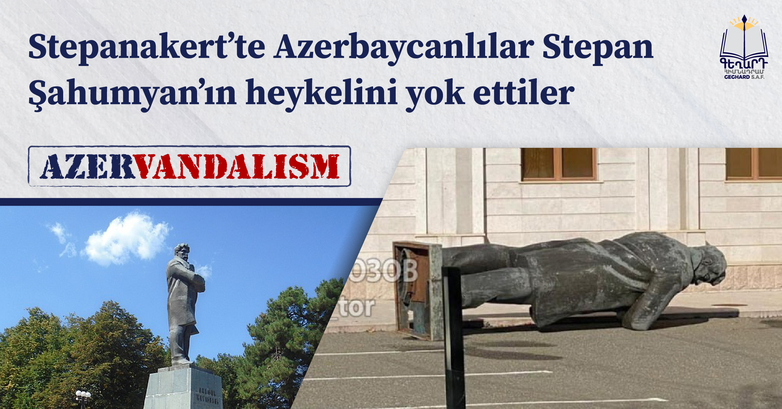 Artsakh’ın Ermenilerden arındırılmasının ardından Azerbaycan, kültürel mirasın yok edilmesine yönelik devlet politikasını sürdürmektedir. Telegram kanallarında yayılan bir videoda, Stepanakert meydanında bulunan toplumsal-siyasal figür Stepan Şahumyan’ın yere devrilmiş heykeli görülmektedir. Söz konusu heykel, daha 2020’deki 44 günlük savaş sırasında Azerbaycan silahlı kuvvetlerinin hedefi haline gelmişti.