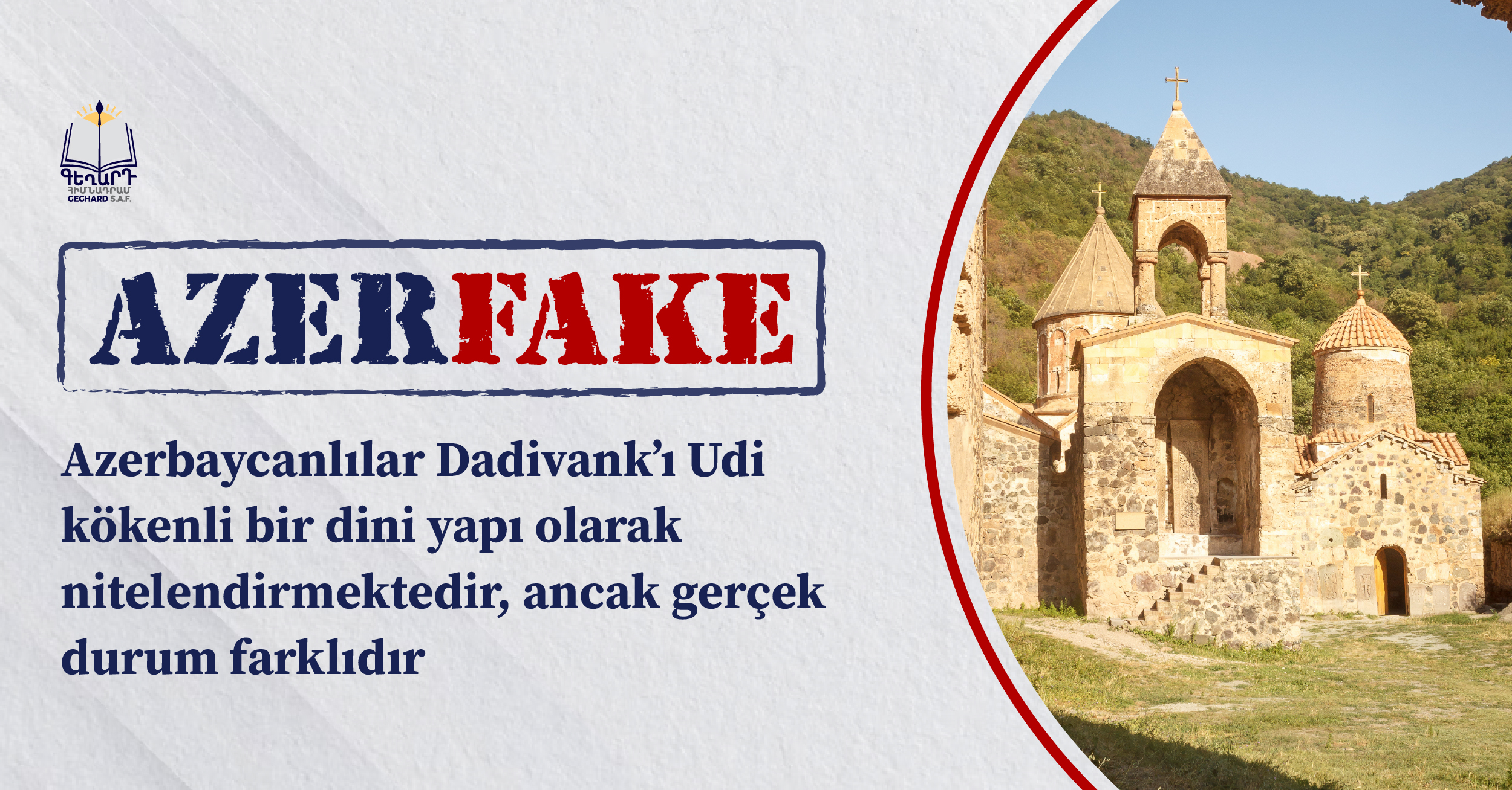 Her ne kadar Udiler Hristiyan olup Ermeni halkının kültürel etkisi altında kalmış ve Ermeni Apostolik Kilisesi’ne bağlı olmuşlarsa da, Dadivank’ın kilise mimarisi ve maddi kültürel unsurları, manastır kompleksinin Ermeni kimliğini açıkça ortaya koymaktadır.