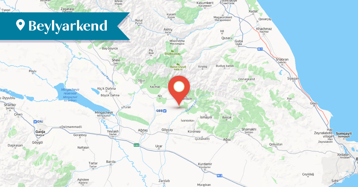 Beylyarkend ya da Beglarkend yerleşimi, Kutkaşen’in (günümüzde Gabala) 13,8 km güneyinde bulunmaktadır. Ermeni köyünün nüfusu buraya 18. yüzyılın sonlarında Artsakh’ın Haçen, Varanda ve Craberd sancaklarından taşınmıştır. Ancak köy mezarlıklarında korunan Ermeni mezar taşları, Ermenilerin Beylyarkend’da 18. yüzyıldan önce de yaşadığını, daha sonra ise bilinmeyen nedenlerle köyün boşaldığını göstermektedir.